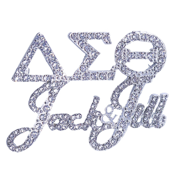 Low Price Wholesale Delta Sigma Theta Jack and Jill Symbol Design Celar Bling Inlaid Greek DST JJOA Jewelry Fancy Brooch Pin
