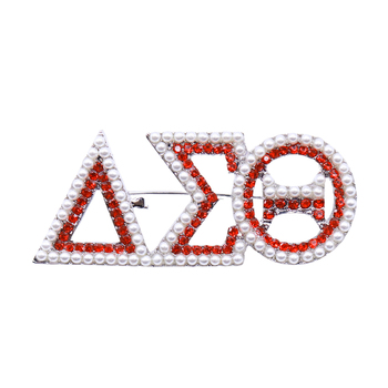 دلتا سيغما ثيتا مطعمة باللؤلؤ الأبيض والحجر الأحمر اللامع دبوس بروش للأخوة