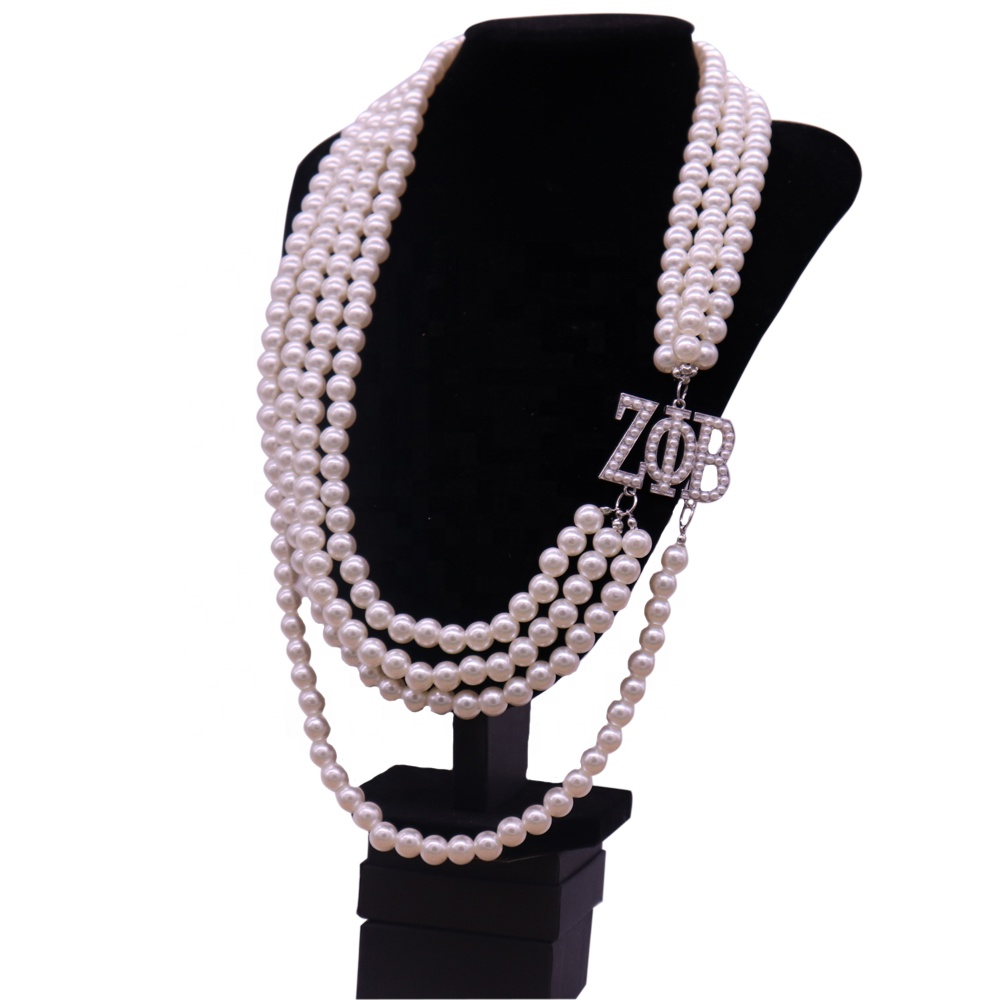 Venta al por mayor múltiples organizaciones diseño griego DST ZPB SGRho JJOA enlaces OES hermandad insignia titular Soror perla cordón collar