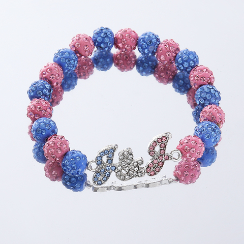 Cuentas brillantes azules y rosas inspiradas en Jack y Jill of America promocionales que hacen una delicada pulsera de joyería con cuentas JJ