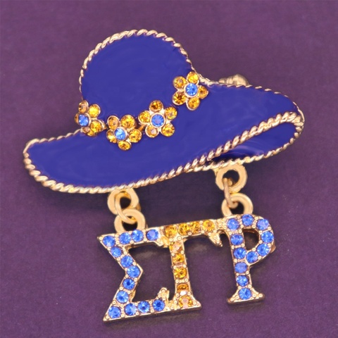 Blauw Email Hoed Spelden Sieraden Griekse Letter Studentenvereniging Sigma Gamma Rho Cap Broche Sieraden Groothandel