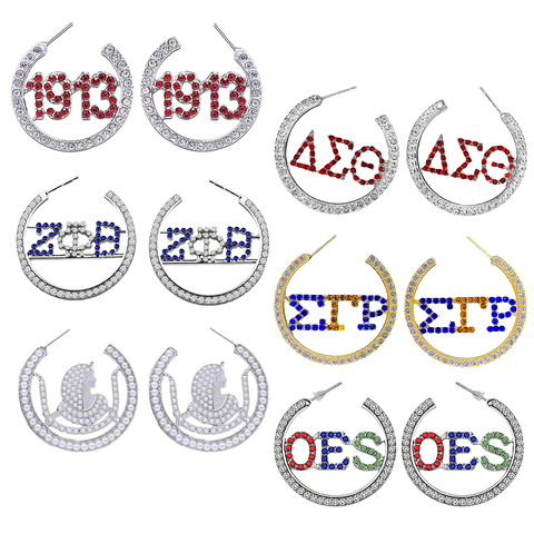 Yunan DST ZPB SGRho 1913 soship takı masonik DOI OES Lady paraparanalia toptan Bling Sorority Hoop küpe gemi hazır